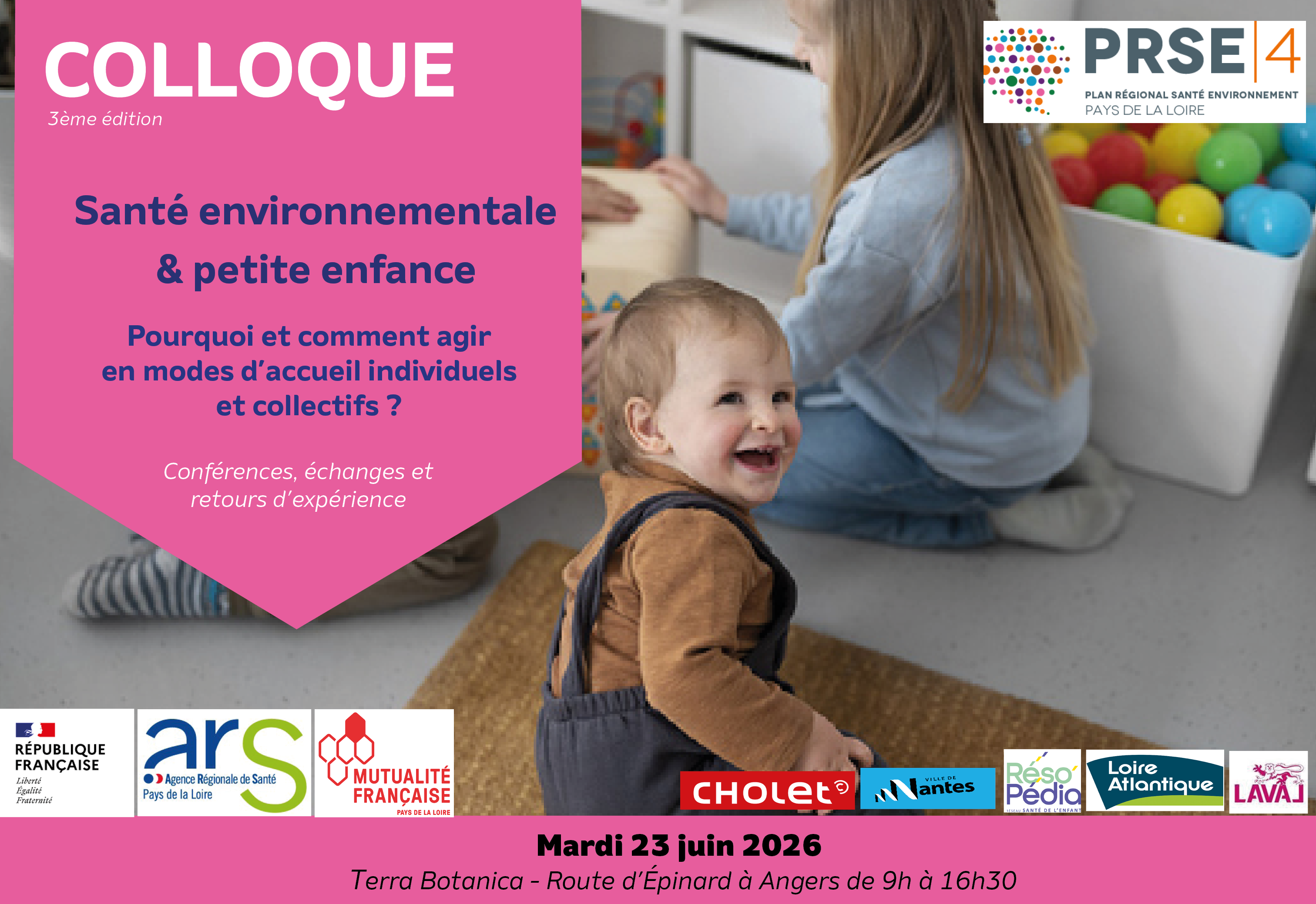 Ce colloque est co-porté par l’ARS et la Mutualité Française Pays de la Loire dans le cadre du PRSE4. Cette édition 2026 bénéficie de la collaboration des villes de Nantes, Cholet et Laval, le département de Loire-Atlantique et Réso’Pédia.